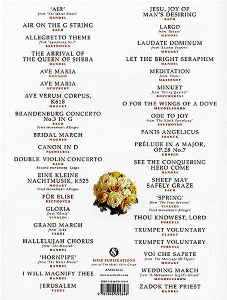 Muzyka jest zawsze magicznym składnikiem każdego ślubu i wesela. Wszystkie te niezapomniane melodie można znaleźć, w jednym wygodnym wydaniu The Wedding Collection, które zostały zaaranżowane na fortepian solo, dla średnio zaawansowanych wykonawców.