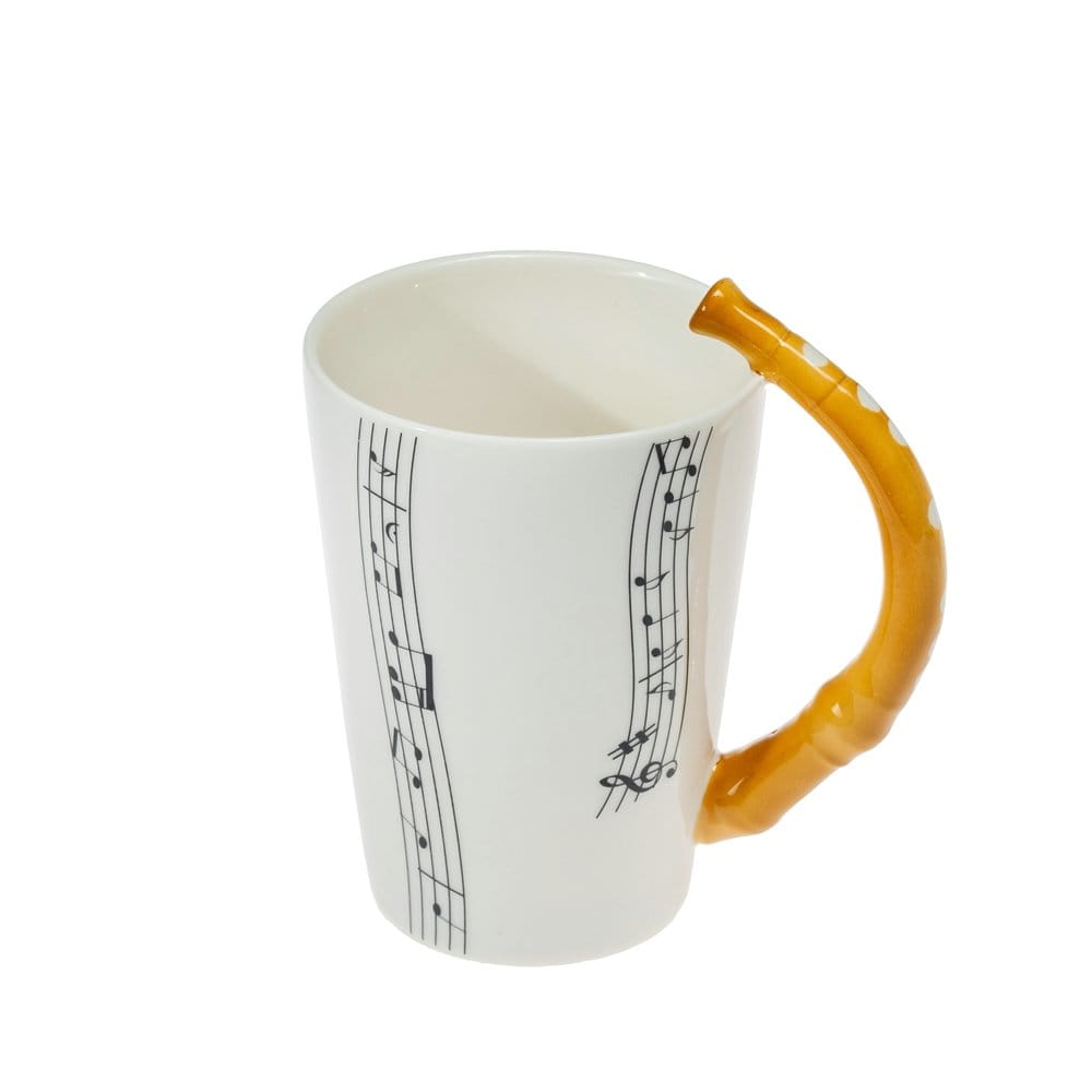 Elegancki kubek z uchwytem w kształcie fletu.