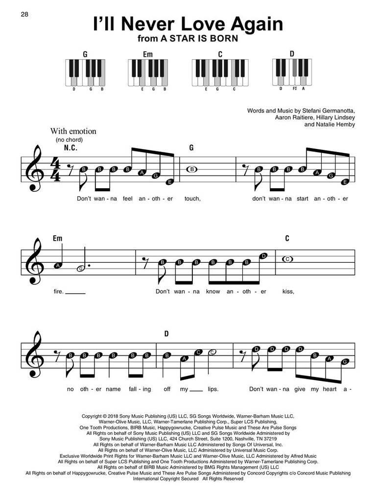 Czas podnieść łapki i zagrać hity Lady Gagi na pianinie! Lady Gaga - Super Easy Songbook sprawia, że granie 21 największych przebojów Mother Monster na pianinie to czysta przyjemność i bezstresowa przyjemność. Każdy aranż, stworzony z myślą o początkujących i początkujących pianistach, zawiera proste melodie dla prawej ręki z nazwami liter w nutach, podstawowe diagramy akordów dla lewej ręki i brak konieczności przewracania stron. Zagraj wszystko, od hitów takich jak Abracadabra, Just Dance i Poker Face, po potężne ballady takie jak Shallow, Million Reasons i I'll Never Love Again. Niezależnie od tego, czy jesteś początkującym pianistą, czy oddanym fanem, ta książka to Twoja przepustka za kulisy największych hitów Gagi w łatwym do zagrania formacie!