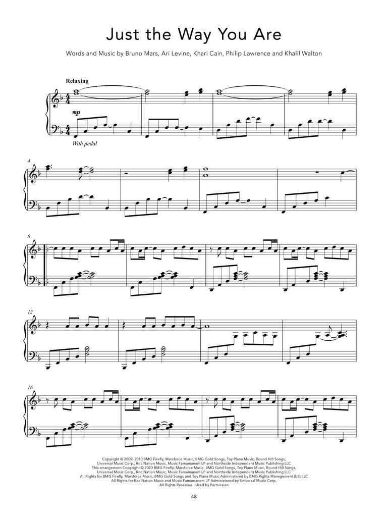Zrelaksuj się przy fortepianie dzięki tej wyjątkowej kolekcji satysfakcjonujących i głęboko pięknych utworów. Niektóre utwory zostały transponowane i uproszczone dla ułatwienia gry. 30 utworów zaaranżowano na fortepian solo w relaksującym stylu, w tym: „All of Me”, „Despacito”, „Perfect”, „Someone Like You”, „Yesterday” i „Your Song”.
