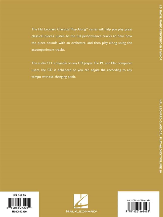 Piano Concerto in F Minor, BWV 1056 Classical Play-Along Volume 10 - Koncert fortepianowy f-moll - J. S. Bach - nuty z podkładem muzycznym (CD)