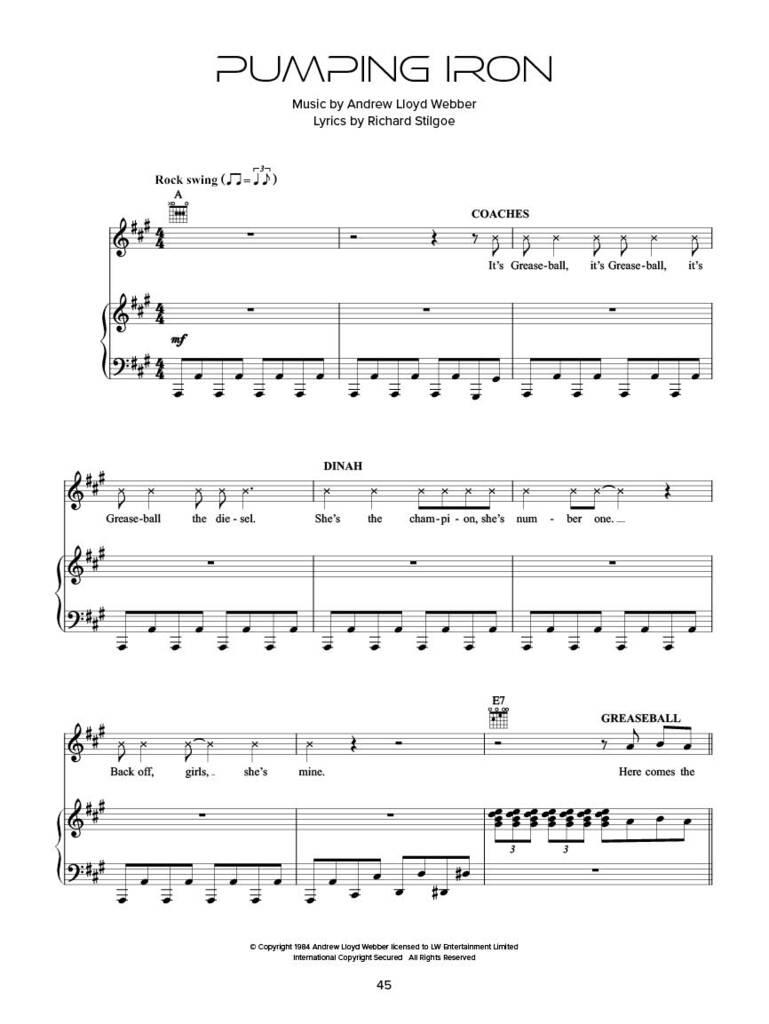17 utworów z zaktualizowanej londyńskiej reaktywacji klasycznego musicalu Andrew Lloyda Webbera. Aranżacje w standardowym formacie na fortepian i wokal, z melodią zawartą w partii fortepianowej. Zawiera hity „Crazy”, „Pumping Iron” i „Rolling Stock”, a także kolorowe zdjęcia z produkcji i przedmowę kompozytora.
